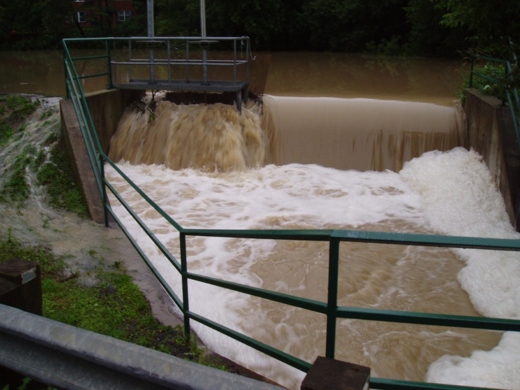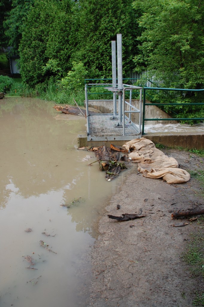Despite repeated flood threats to the dam, dike and adjacent Cameron over the years, nothing was done to reinforce the system before April 2014, when rising water levels and ice pressure unseated the 62-year-old dam. Before the administration could agree on the best course of action, the dam slumped into the sinkhole created by the escaping water and broke away from the curtain walls directing the flow into the Cameron culvert. What’s left provides minimal floodwater retention but our consulting engineers warn that a major torrent (like those of 2006 and 2009) could displace the entire structure, possibly blocking the Cameron culvert and washing away a section of Cameron.